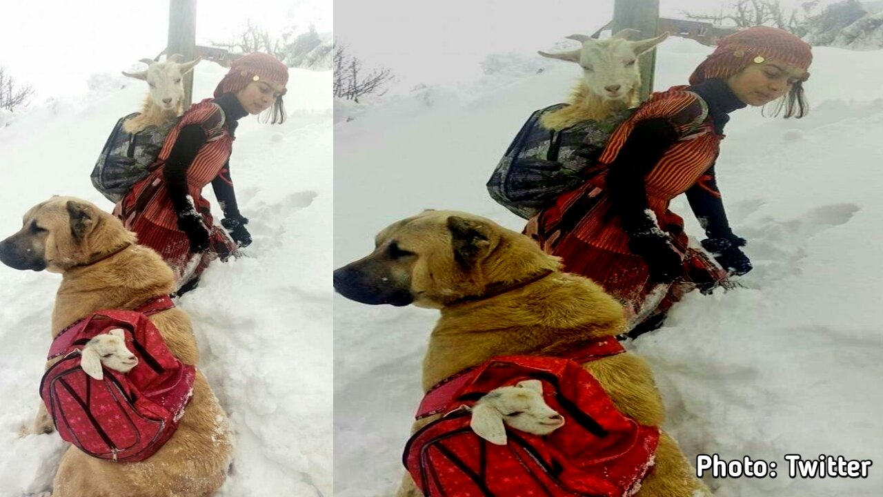 A Twitter user named Kumar Manish Tweeted ’11-year-old Hamdü Sena Bilgin from small village outside the city of Rize, in Turkey. Hamdü Sena loaded the mother goat into her backpack, and put the fragile baby into the other. Tomi, the Dog carried her in thick snow to ensure their safety.
