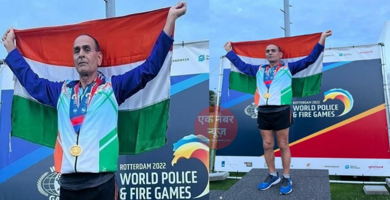 Indian Retired DSP Jagdish Singh of Meerut won gold medal. Jagdish Singh 66 won gold medal in World Police and Fire Games.