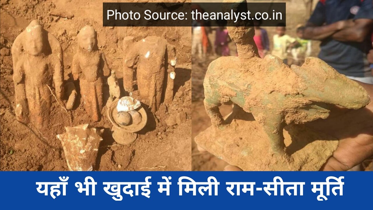 इसी जमीन की खुदाई के दौरान कुदाल किसी कठोर वस्तु से टकराई। इसके बाद जब ध्यान से खुदाई की गई तो वहां से भगवान श्री राम, माता जानकी और भाई लक्षमण की प्रतिमा निकली। इन प्रतिमाओं के अतिरिक्त यहाँ से शंख, दो बड़े गोल पत्थर, एक धूपदानी, भगवान नन्दी की प्रतिमा भी निकाले गए थे।