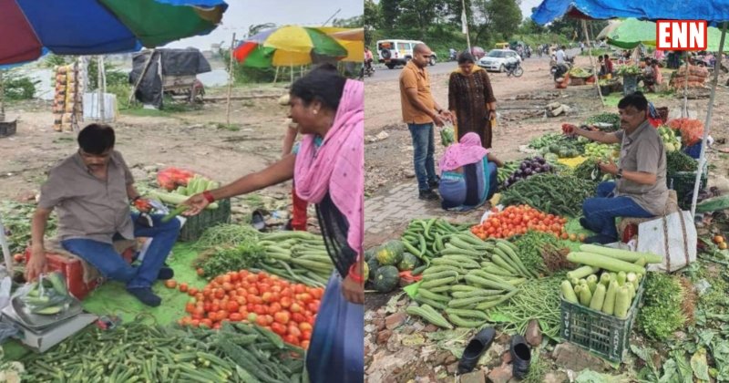 In now-viral photos, Akhilesh Mishra, special secretary, transport department, was seen 'selling' vegetables at a roadside shop.