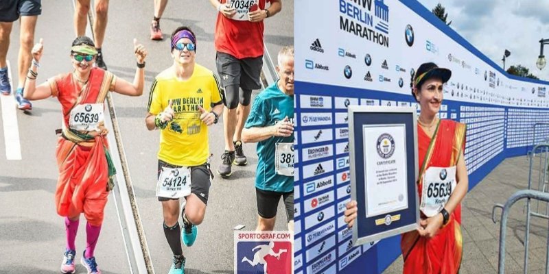 Kranti Pramod Salvi makes India proud by achieving the Guinness World Record of Fastest Marathon Dressed in a Saree, clocking 03:57:07, at the Berlin Marathon (Berlin, Germany) on the 16th September 2018. #Berlin42 #VadodaraMarathon #MG #Alembic #Vadodara #Guinnessworldrecord pic.twitter.com/D9ClhDeDQ5
