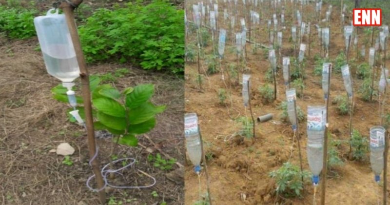 Indian Farmer from water deficit Jhabua district of MP has used Waste Glucose Bottles To Build Drip Irrigation System.