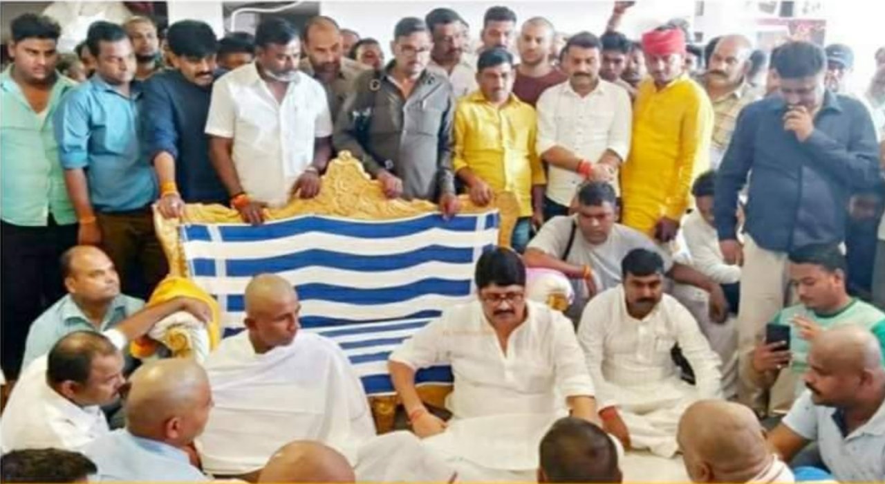 Raja Bhaiya has reached at Renukoot Nagar Panchayat President Shiv Pratap Singh Ballu Singh home who was dead in mysterious condition.