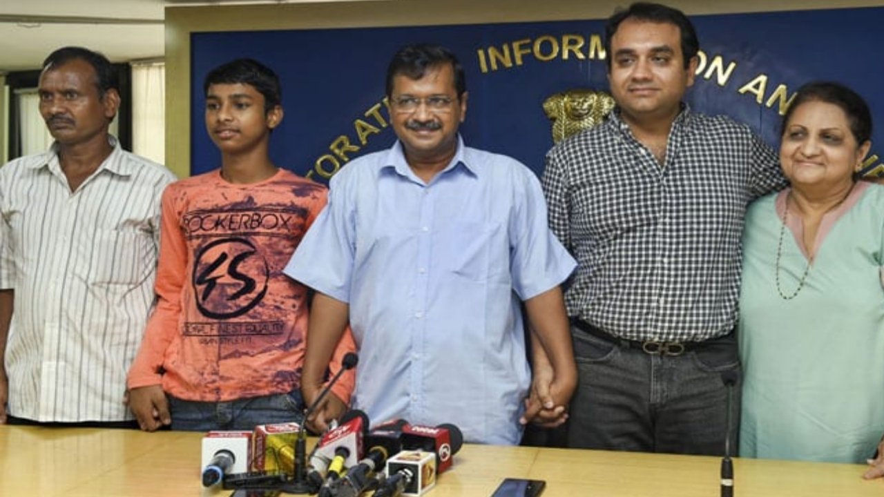 Delhi CM Arvind Kejriwal introduced the south Delhi based family at a press conference during which Vijay Kumar and his parents were also present.