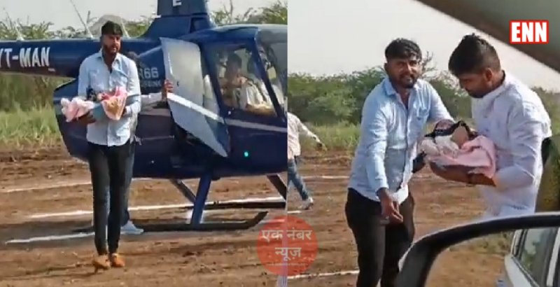 हेलीकॉप्टर (Helicopter) से उन्होंने 20 मिनट में 25 किमी की दूरी तय कर ली थी। नवजात बेटी के इस अंदाज भरे स्वागत को देखने के लिए पूरा गांव एकत्रित हो गया। हेलीकॉप्टर को एक खुले मैदान में बने एक अस्थायी हेलीपैड पर उतारा गया। बेटी के स्वागत की एक क्लिप सोशल मीडिया पर चर्चित हो रही है।