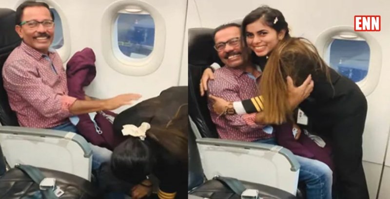 उसके बाद पहली सीट पर बैठे उसके पिता के पास जाकर सबसे पहले उनके पैर छूती है और उनके गले लग जाती हैं। उस वक्त उस बेटी के आंखों में आंसू थे वह भी खुशी के। उसके पिता खुशी खुशी अपनी बेटी को आशीर्वाद देते है। यह पल उस पायलट युवती के साथ उसके परिवार के लिए भी काफी हर्ष पूर्ण था। उसके पिता वीडियो में काफी खुश नजर आ रहे हैं, साथ में युवती भी अपनी कामयाबी से काफी खुश।